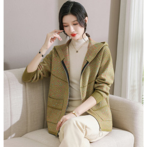 妈妈春装新款休闲夹克女毛衣洋气开衫中老年人春秋季针织翻领外套