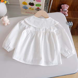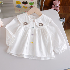 女童可爱百搭衬衫25秋季新款纯色立体小猫衬衣女宝宝时尚洋气上衣
