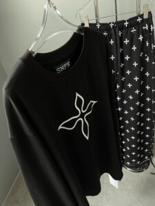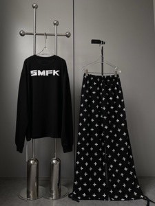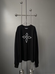 高品质~SMFK梦境十字花复古阔身Tee林一同款宽松休闲黑色长袖T恤