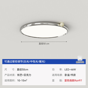 全光谱包豪斯中古卧室吸顶灯铬色超薄复古奶豆护眼极简主卧房间灯