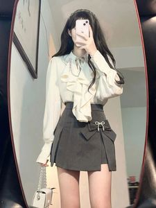 小香风早春新款荷叶边衬衫+高腰显瘦包臀半身裙两件套【原版面料