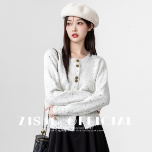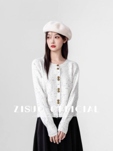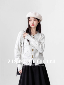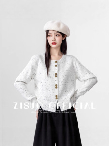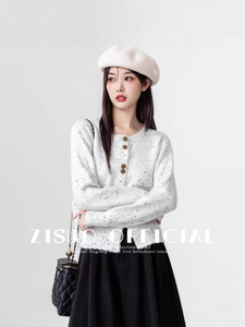 圆领针织开衫女2025秋季新款短款修身时尚百搭设计感上衣