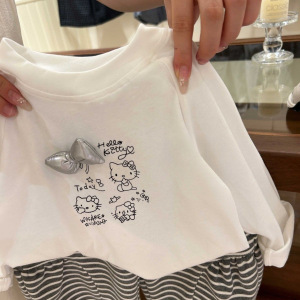 女童秋套装新款儿童时尚可爱韩版长袖T恤条纹长裤两件套0090A019
