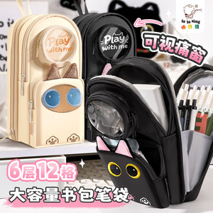 可爱猫咪书包笔袋可手提文具袋小学生文具盒笔盒多功能铅笔袋