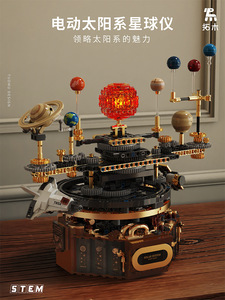 拓木T2004电动太阳系星球仪科教益智拼装积木兼容乐高玩具摆件