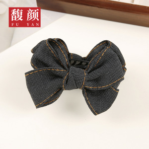 韩式发夹发饰女高级感简约牛仔蝴蝶结抓夹后脑勺鲨鱼夹子头饰批发