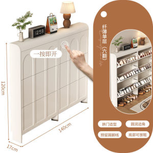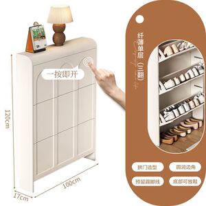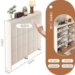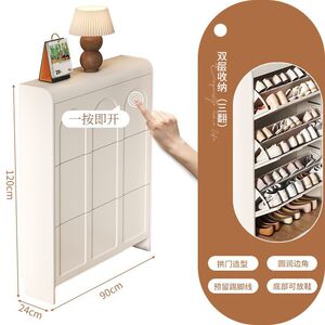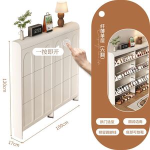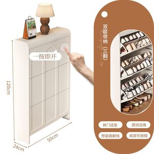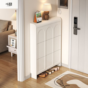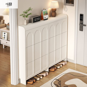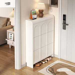 新款奶油风超薄翻斗鞋柜家用门口入户翻斗式玄关柜一体省空间收纳