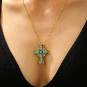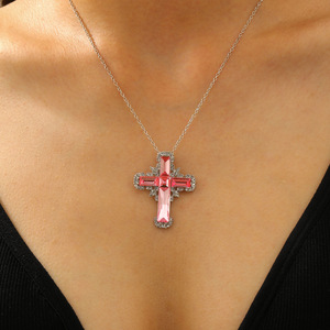 欧美风彩钻十字架项链小众个性设计感锁骨链时髦百搭颈链毛衣链女