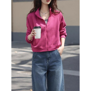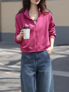 松弛感立领棒球服潮2025春秋款多巴胺吸睛色基础简约华夫格外套女