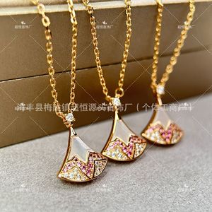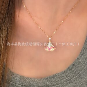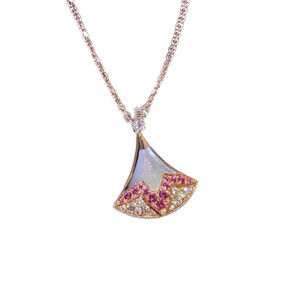 25新款V金扇子项链女七夕裙渐变天然白贝母粉钻吊坠锁骨链玫瑰金