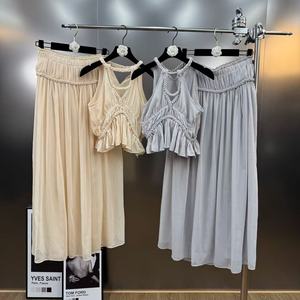 2025年秋季麻花编绳收腰吊带裙+半身长裙法式气质风两件套