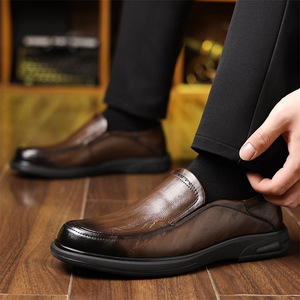 温州皮鞋男2025秋季新款商务休闲皮鞋懒人一脚蹬中年爸爸一件代发