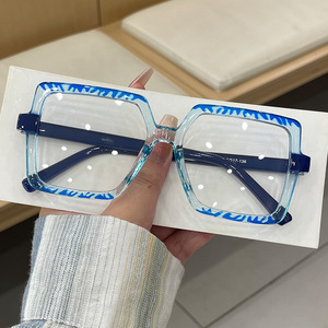 方框拼色防蓝光平光镜 欧美跨境ins墨镜百搭休闲素颜街拍眼镜框潮