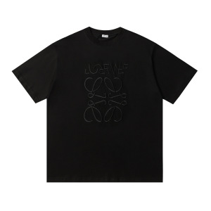 跨境25ss罗家高品质刺绣logo宽松纯棉短袖男女款圆领时尚百搭T恤