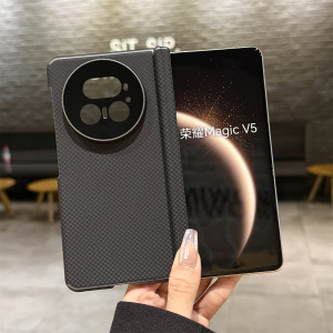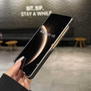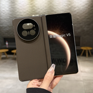 适用荣耀magicv5手机壳双中轴铰链保护matex5素皮凯夫拉纹保护壳