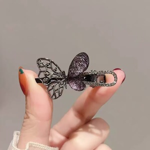 琉璃水钻蝴蝶发夹 2025新款侧边刘海夹子简约碎发鸭嘴夹现货批发