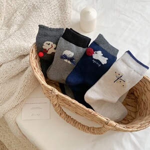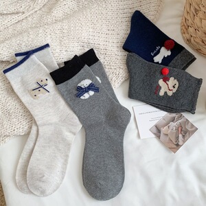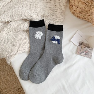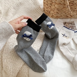 秋季蝴蝶结西高地小狗袜日系可爱袜子女中筒袜蝴蝶结吸汗透气棉袜