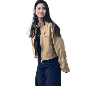 美式复古卡其色时尚百搭外套女2025秋季新款机车街头风夹克上衣潮
