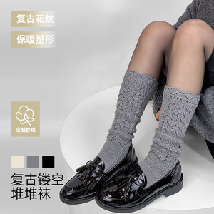 2025秋冬新款针织叠穿中筒袜甜美百搭镂空堆堆袜直播同款小腿袜