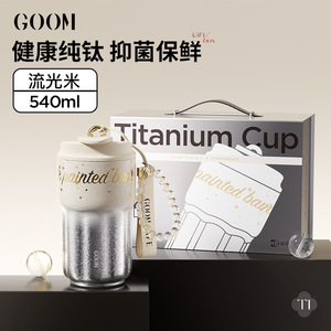 GOOM纯钛保温杯男女高颜值便携咖啡杯大容量车载吸管水杯子送礼