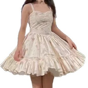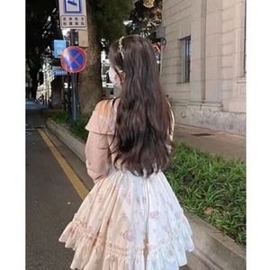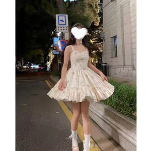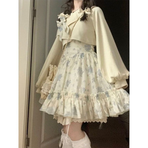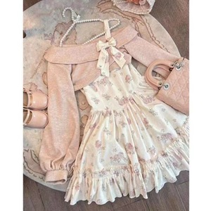 甜美蔷薇碎花吊带裙2025女套装连衣裙新款斜肩重工毛衣裙摆印花。