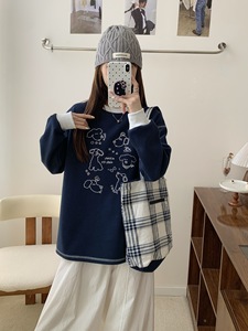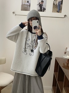 9983下摆散口+刺绣2025韩系减龄ins风时尚休闲百搭中长款卫衣女