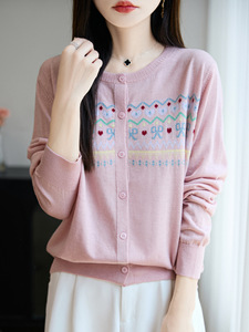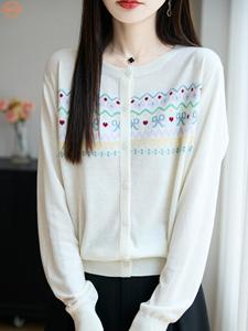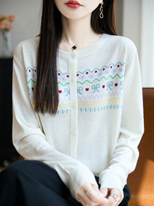 圆领提花针织开衫女秋季新款毛衣外套时尚长袖打底衫减龄上衣