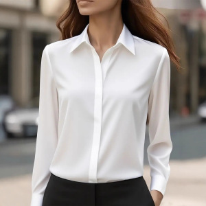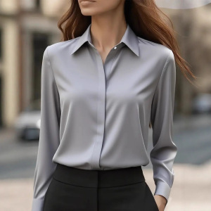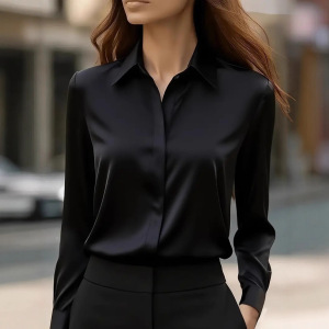 2025独立站wish亚马逊爆款 秋季纯色长袖百搭衬衫翻领缎面衬衫女