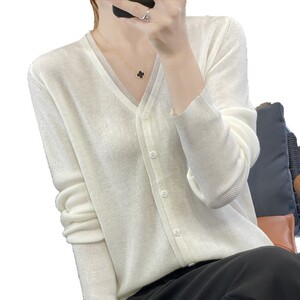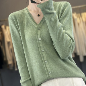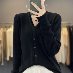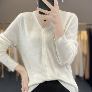 25秋季新款V领精仿羊毛针织长袖四平开衫上衣薄款百搭外套女内搭