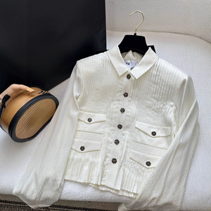 2025早秋新款南油cha时髦洋气小香风设计感百搭排扣翻领长袖衬衫