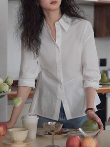 60支有机棉收腰两穿 三开身立体裁剪office siren风衬衫上衣女