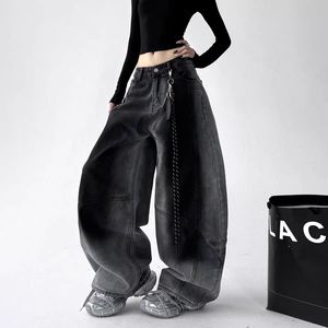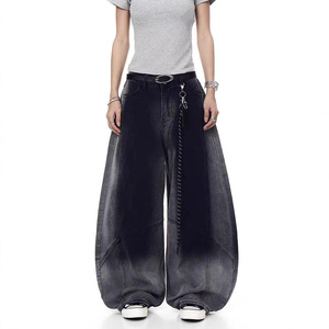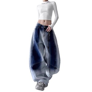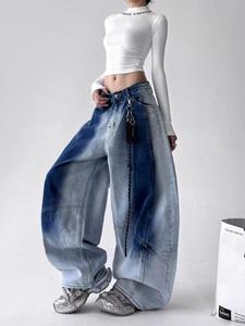 复古嘻哈街头水洗牛仔裤女宽松阔腿显瘦百搭嘻哈渐变爵士弯刀裤子