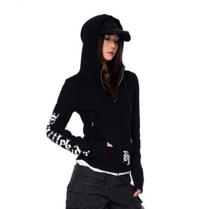美式复古字母印花连帽卫衣女早秋新款修身显瘦拉链袋鼠兜长袖上衣