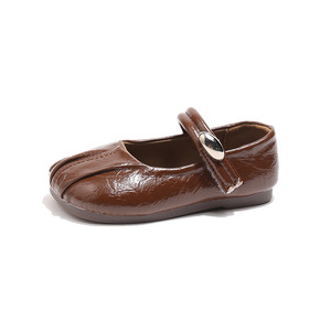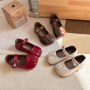 ins法式小皮鞋2025春秋季新款韩版女童褶皱公主鞋一字扣玛丽珍鞋