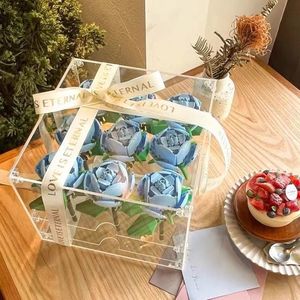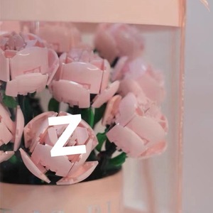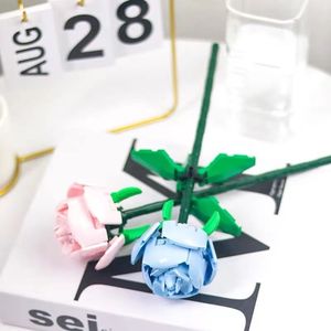 永生花粉玫瑰蓝玫瑰花朵室内摆件拼装积木礼物情人节送女友批发