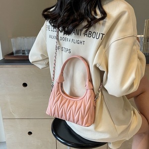 包包女2025新款高级质感小众春夏季复古链条单肩斜挎包褶皱手提包