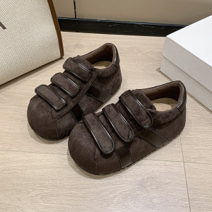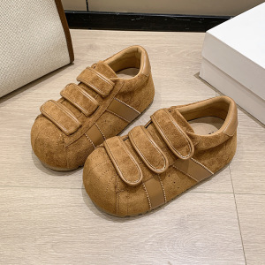 丑萌贝壳头德训鞋女2025新款复古磨砂皮魔术贴大头板鞋洋气女单鞋