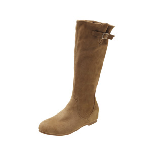 美拉德慵懒感女冬复古堆堆靴法式显瘦高筒靴粗跟绒面卡其色长靴