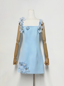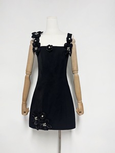 法式立体花朵吊带连衣裙2025新款时尚气质名媛风收腰设计感短裙
