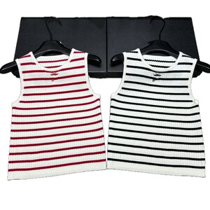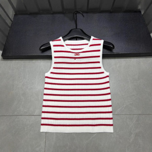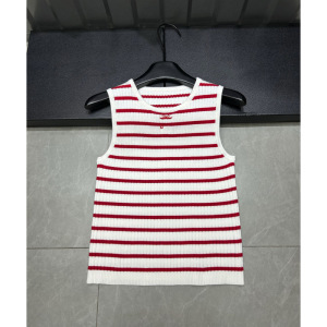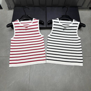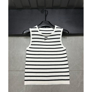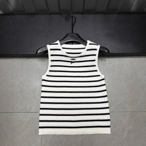 25年早秋新款迪家字母小蜜蜂条纹针织无袖套头背心宽松百搭女上衣