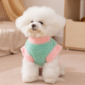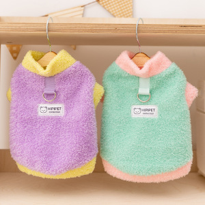 狗狗冬季衣服简约撞色绒衣可牵引厚款保暖两脚衣泰迪宠物猫咪衣服