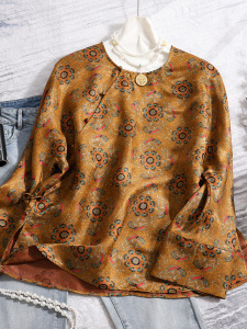 深圳南油敦煌桑蚕丝香云纱新中式国风上衣25新款长袖斜襟系带衬衫