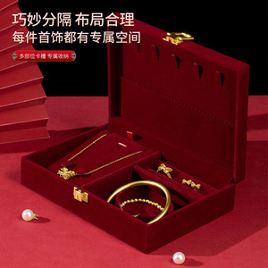 订婚首饰盒男方金器结婚彩礼钱盒子酒红感婚礼三金五金盒