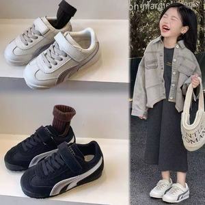 韩版儿童运动鞋2025春季新款男童复古德训鞋魔术贴女童休闲阿甘鞋