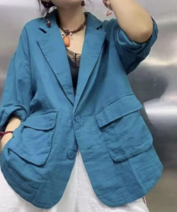 2025秋季新款双层纱洋气西装休闲百搭宽松外套纯色百搭显瘦上衣女