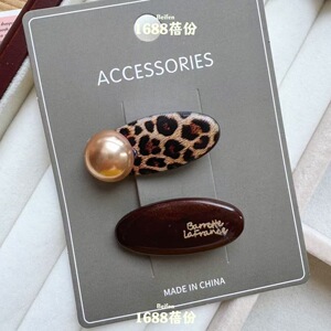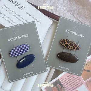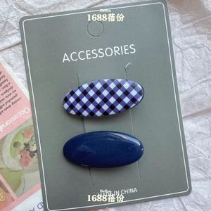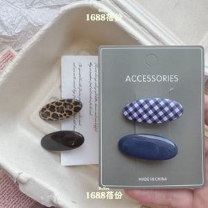 藏蓝格纹刘海夹发饰复古气质豹纹侧边碎发夹女前额碎发鸭嘴夹发卡