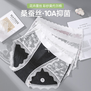 法式蕾丝大码内裤女胖mm200斤彩纱莫代尔女士三角裤桑蚕丝加长裆