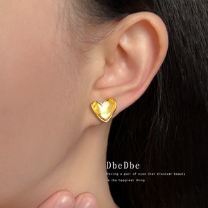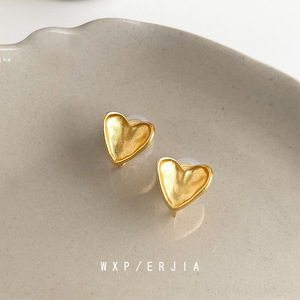 小巧简约磨砂设计感爱心蚊香盘耳夹文艺复古时尚无耳洞耳饰