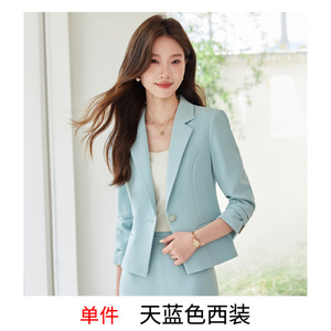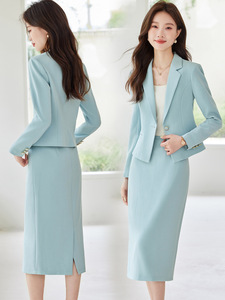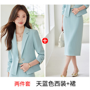 2025秋冬新款职业装浅蓝色西装套装女小个子高级感两件套套装裙