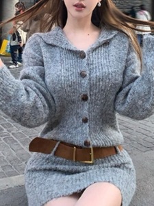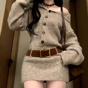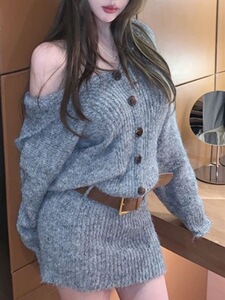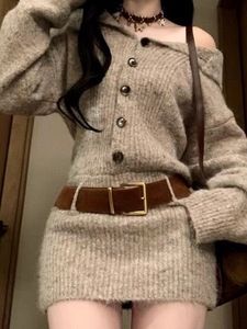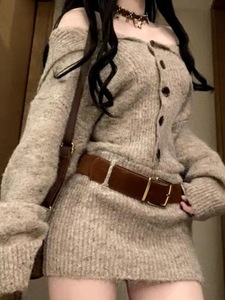 法式纯欲风一字肩针织毛衣连衣裙女秋冬2025年新款设计感包臀短裙
